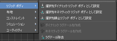 [シミュレーション - MassFX](Simulation - MassFX)サブメニュー