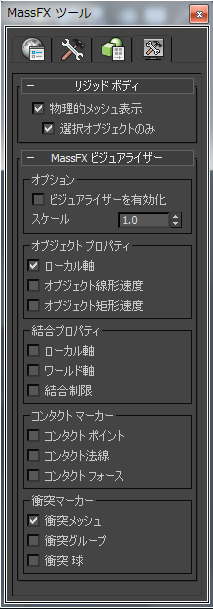 [MassFX ビジュアライザー](MassFX Visualizer)ロールアウト