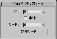 [球体ギズモ](SphereGizmo)を使用すると、シーンに球体形または半球体形のギズモを作成できます。[球体ギズモ](Sphere Gizmo)ボタンをクリックすると、[球体ギズモ パラメータ](Sphere Gizmo Parameters)ロールアウトが表示されます。