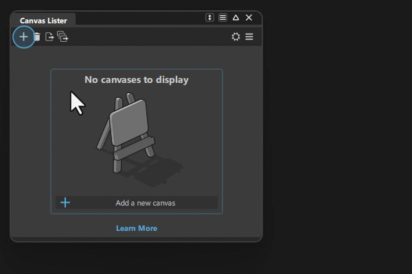 Canvas Lister は、プロジェクト内のすべてのキャンバスを表示します。リスタを使用してキャンバスを読み込み、管理します。イメージをキャンバスとして読み込むことにより、イメージをプレーンとして配置し、変換することができます。