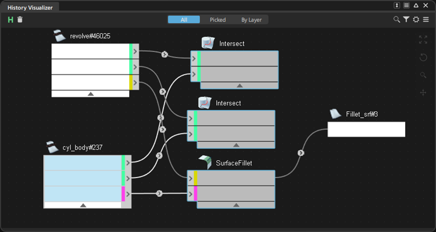 グラフ ウィンドウの上部にある All、Picked、By Layer ボタンを使用して、ビューにフォーカスします。