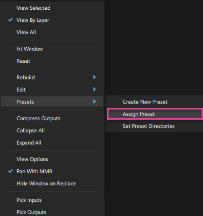 ノードを右クリックし、コンテキスト メニューから Assign Preset を選択します。
