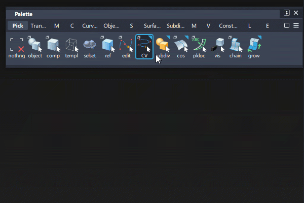 Alias のツール パレット ウィンドウの表示/非表示を切り替えます。ジオメトリを作成したり形状を変更したりするためにモデリング用のツール パレットにアクセスするには、ツール パレットを使用します。