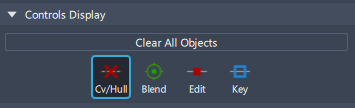 選択したオブジェクトの CV を表示するには、Cv/Hull ボタンをクリックします。CV が表示されない場合は、Transform CV ツール内でオブジェクトをクリックすると、自動的にすべての CV およびハルがオンになります。異なるツールを選択するとすぐに、CV とハルは再度オフになります。