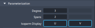 サーフェスの場合、一番左のフィールドは U 方向の次数またはスパンを表します。一番右のフィールドは V 方向の値を表します。