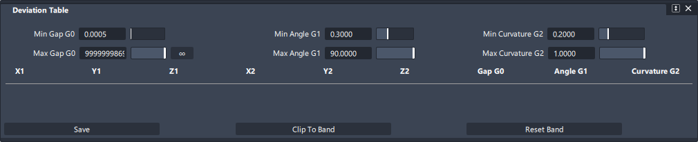 選択された偏差ロケータオブジェクトのすべてのサンプル値の数値テーブルを表示する Deviation Table ウィンドウの表示と非表示を切り替えます。