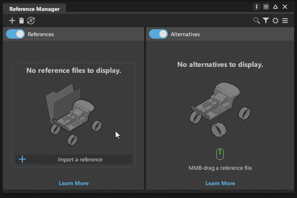 Reference Manager ウィンドウでファイルを選択し、中マウス ボタンで Alternatives ペインにドラッグします。