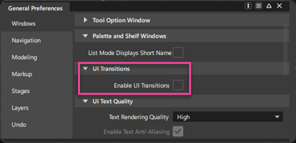 UI Transitions: UI のトランジションをオフにしてパフォーマンスをさらに向上させることができる基本設定が追加されました。