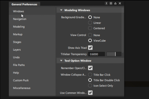 既定では、内部および外部リング メニューには、カーブ、サブディビジョン モデリング、視覚化のツールとオプションがあらかじめ設定されています。内部および外部リングは、カスタム パック エディタを使用してカスタマイズできます。カスタム パック エディタにアクセスするには、Preferences > Custom Puck Editor を選択します。