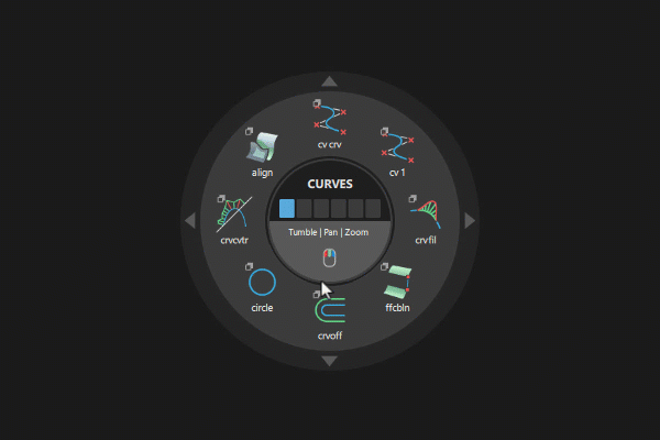 シェルフに複数の外部リングが含まれている場合、パックの外周に沿ってこれらのタブが表示されるようになりました。タブを選択すると、その項目にアクセスできます。タブを切り替えるには、左マウス ボタンでクリックするか、左マウス ボタンでタブをクリックしてドラッグするか、外周にカーソルを合わせてマウス ホイールを使用します。この機能を使用しても、外部リングの作成方法は変わりません。
