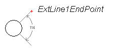 ExtLine1EndPont と ExtLine2EndPoint プロパティは、寸法補助線の終点を含んでいます。指定の寸法に寸法補助線がない場合、これらの点は ExtLine1StartPoint と ExtLine2StartPoint に等しくなります。