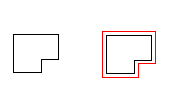 元のオブジェクトとオフセットされたオブジェクト(赤で示されています)。