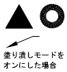 塗り潰しモードをオフにします。オブジェクトの外形線だけが表示され印刷されます。塗り潰しモードを変更しても、図面を再作図するまでは、既存のオブジェクトには影響しません。線の太さの表示は、塗り潰しモードの設定による影響は受けません。