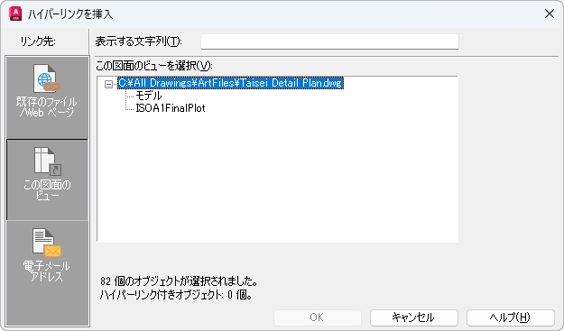 現在の図面内の名前の付いたビューをリンク先として指定します。