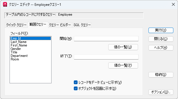 [データ ビューとクエリー オプション]ダイアログ ボックスが表示されます。