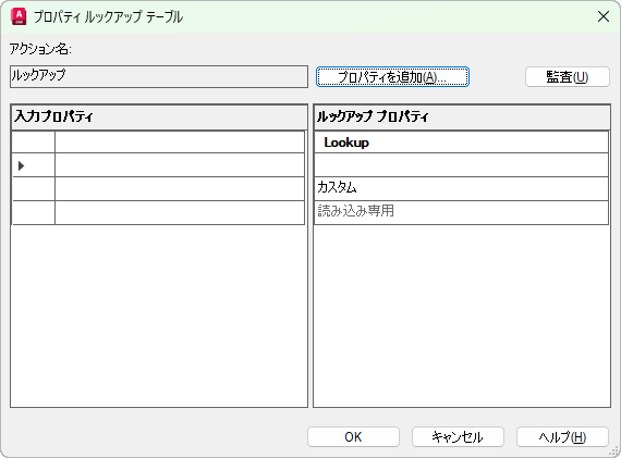 [プロパティ ルックアップ テーブル]ダイアログ ボックス