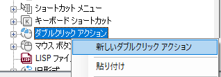- [カスタマイズ]タブの[ <ファイル名> 内のカスタマイズ]ペインで、[ダブルクリック アクション]ノードを右クリックします。[新しいダブルクリック アクション]を選択します。