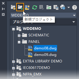プロジェクト ファイル(.WDP)は、指定したフォルダに作成され、プロジェクトの説明やプロジェクト設定を格納しています。新規プロジェクトがアクティブなプロジェクトになります。このプロジェクトに図面を追加することができます。