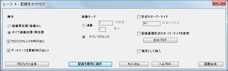 図面のプロパティ設定が事前選択されていますが、これらの設定はオーバーライドすることができます。[確定]としてマークされている線番は、[線番]コマンドを使用するときに更新されません。線番を[確定]としてマークするには、[線番編集]コマンドを使用します。 検索