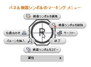 現在のワークスペースが[ACADE & 2D 製図および注釈]に設定されていることを確認します。 マーキング メニューは、放射状のコンテキスト メニューです。電気オブジェクト上にマウス カーソルを合わせて右クリックします。表示されるメニューのオプションは、カーソルの下のオブジェクトのタイプによって異なります。