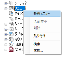 注: コマンドをプルダウン メニューに追加した後、そのコマンドの表示名を変更できます。これにより、プルダウン メニュー項目の表示や、[Alt]キーを使用したキーボード ナビゲーションでアクセスする方法をコントロールすることができます。アクセス方法を定義するには、プルダウン メニューの下位のプルダウン メニュー項目を選択し、[プロパティ]ペインで[名前]プロパティを変更します。