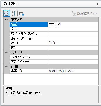 - [プロパティ]ペインで、コマンドのプロパティを変更します。