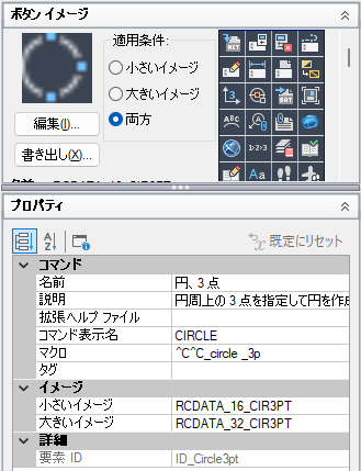 イメージ リストからイメージを選択すると、イメージ名が選択したコマンドの[小さいイメージ]、[大きいイメージ]、または[両方]のプロパティに割り当てられます。