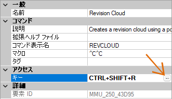 4. [プロパティ]ペインで、[キー]ボックス内をクリックしてから[]ボタンをクリックして、[ショートカット キー]ダイアログ ボックスを開きます。