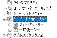 - [カスタマイズ]タブの[ <ファイル名> 内のカスタマイズ]ペインで、[キーボード ショートカット]ノードを選択します。
