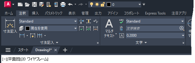 この演習では、[注釈]タブと[寸法]パネルの位置を変更します。