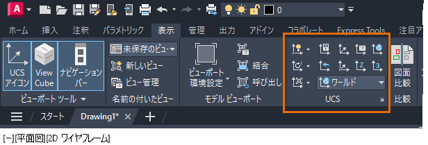 この演習では、[パラメトリック]リボン タブを非表示にし、[表示]タブに[座標]パネルを表示します。