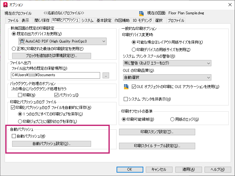 注: 自動パブリッシュされた PDF、DWF、または DWFx ファイルによって、同じ名前の既存のバージョンは自動的に上書きされます。