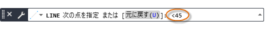 特定の角度で線分を描く必要がある場合、次に指定する点に対して角度をロックすることができます。たとえば、線分の 2 点目を 45 度の角度で作成する必要がある場合は、コマンド ウィンドウに <45 と入力します。