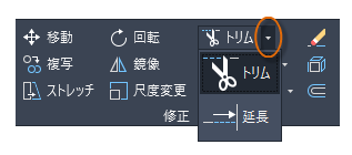 TRIM コマンドも手順は同じですが、トリムするオブジェクトを選択するときに、トリムする部分を選択する点が異なります。