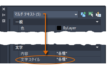 他のいくつかの注釈機能と同じように、マルチ テキストにも多数の設定が用意されています。このような設定は、STYLE[文字スタイル管理]コマンドを使用して「文字スタイル」 として保存できます。その後、[注釈]パネルのドロップダウン矢印をクリックして保存した文字スタイルにアクセスすることができます。現在の文字スタイルが、ドロップ ダウン リストの一番上に表示されます。