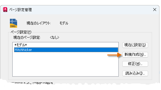 [ページ設定管理]ダイアログ ボックスを開くには、[モデル]タブまたはレイアウト タブを右クリックし、[ページ設定管理]を選択して開きます。PAGESETUP[ページ設定]コマンドでも開くことができます。