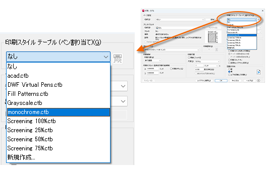 印刷スタイル テーブルは、色の処理に関する情報を提供します。モニタでは適切に表示されている色が、PDF ファイルや印刷に適しているとは限りません。たとえば、図面はカラーで作成しても、モノクロで出力したい場合もあります。ここで、モノクロ出力を指定する方法を説明します。