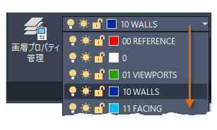 どの画層名も 2 桁の数字で始まっていることに注目してください。この規則により、画層の並び順を、アルファベット順以外の順序に簡単にコントロールできます。