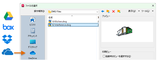 クラウド ストレージ プロバイダのアカウントを持っている場合は、そのアカウントを AutoCAD のファイル選択ダイアログ ボックスの場所バーに追加して、クラウド ストレージ アカウントの図面に直接アクセスすることができます。場所バー内で右クリックし、ナビゲーション ショートカットの名前とパスを入力するだけです。