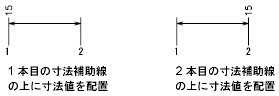寸法補助線を基準に、寸法線に沿った寸法値の水平方向の位置をコントロールします。(システム変数 DIMJUST[寸法値水平位置])