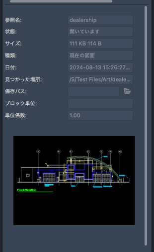 DWG (外部参照)を選択すると、その他のプロパティが表示されます。参照イメージ固有のプロパティは、いずれも編集できません。