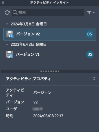 現在の図面のアクティビティを表示する[アクティビティ インサイト]パレットを開きます。