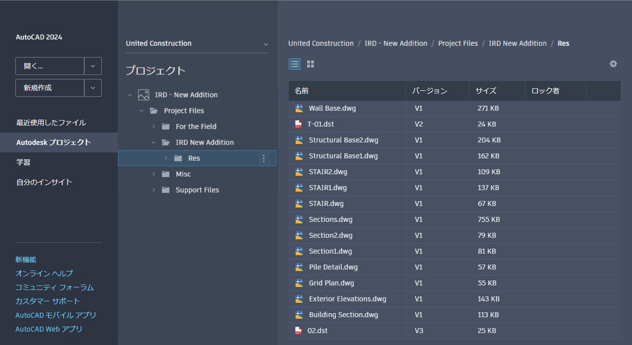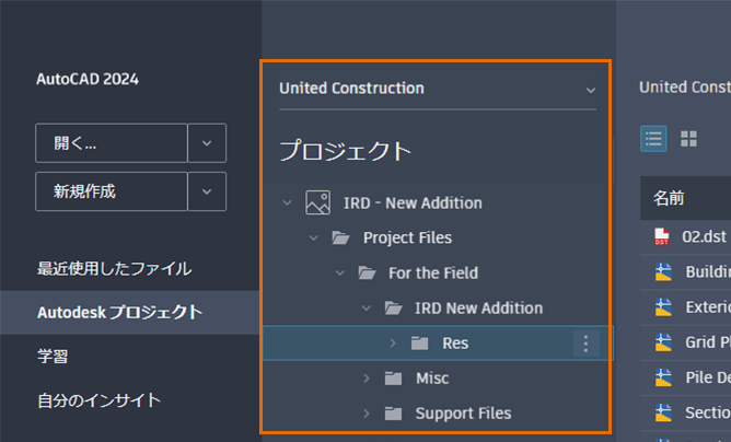 - [Autodesk Docs]タブの名前が[Autodesk プロジェクト]に変更されました。