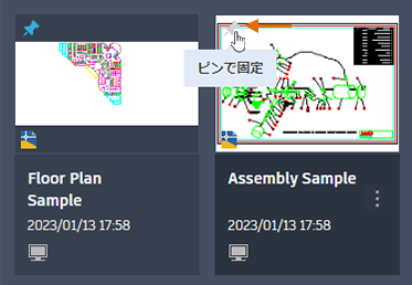 - 図面のサムネイルにカーソルを合わせると、左上コーナーにピン アイコンが表示されるようになりました。