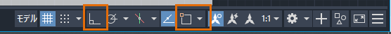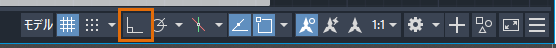 ステータス バーの[直交モード]ボタンがオンになり、青色になります。