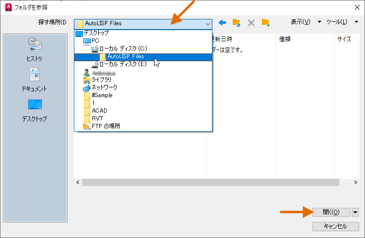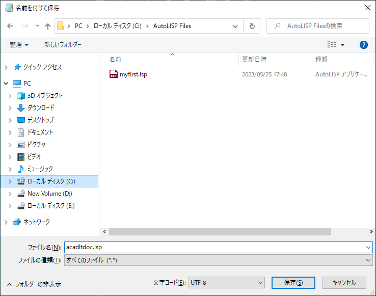 前のセクションで myfirst.lsp ファイルを作成した場合は、そのファイルを選択できます。