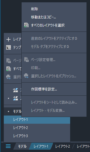レイアウト名を右クリックすると、その他のオプションが表示されます。