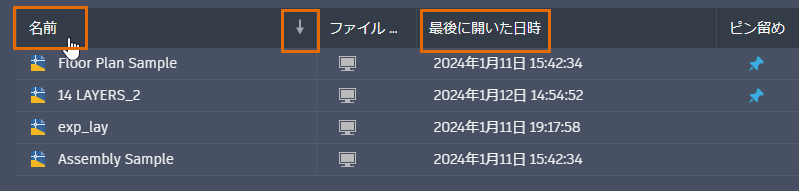 ファイルを固定すると、固定を解除するまで、一覧の一番上に表示されます。