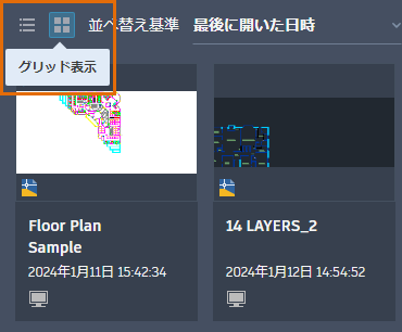 - ドキュメントの上で、サムネイルとテキストを表示するグリッド表示か、テキストのみを表示するリスト表示かを選択します。