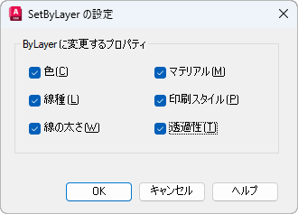 SETBYLAYER[ByLayer に設定] (コマンド) 検索: [設定(S)]